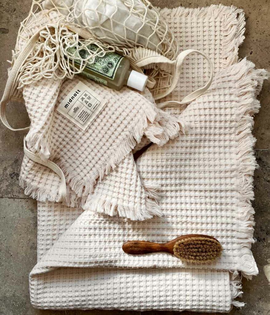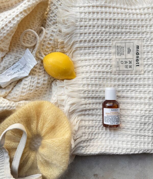 Auf Wunsch vieler sind unsere beliebten Handtücher zurück. Das große Badetuch (100×150 cm) ist ideal für entspannte Tage am Strand oder als extra großes Duschtuch, während das kleinere Handtuch (50×70 cm) jedem Badezimmer eine stilvolle, weiche Note verleiht. Gefertigt aus 100 % Bio-Baumwolle.